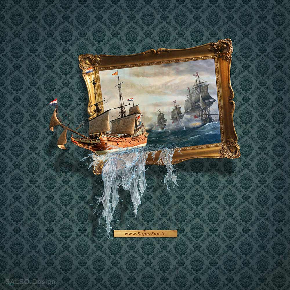 About the “3D Ship comes out of the painting canvas mural” concept:
