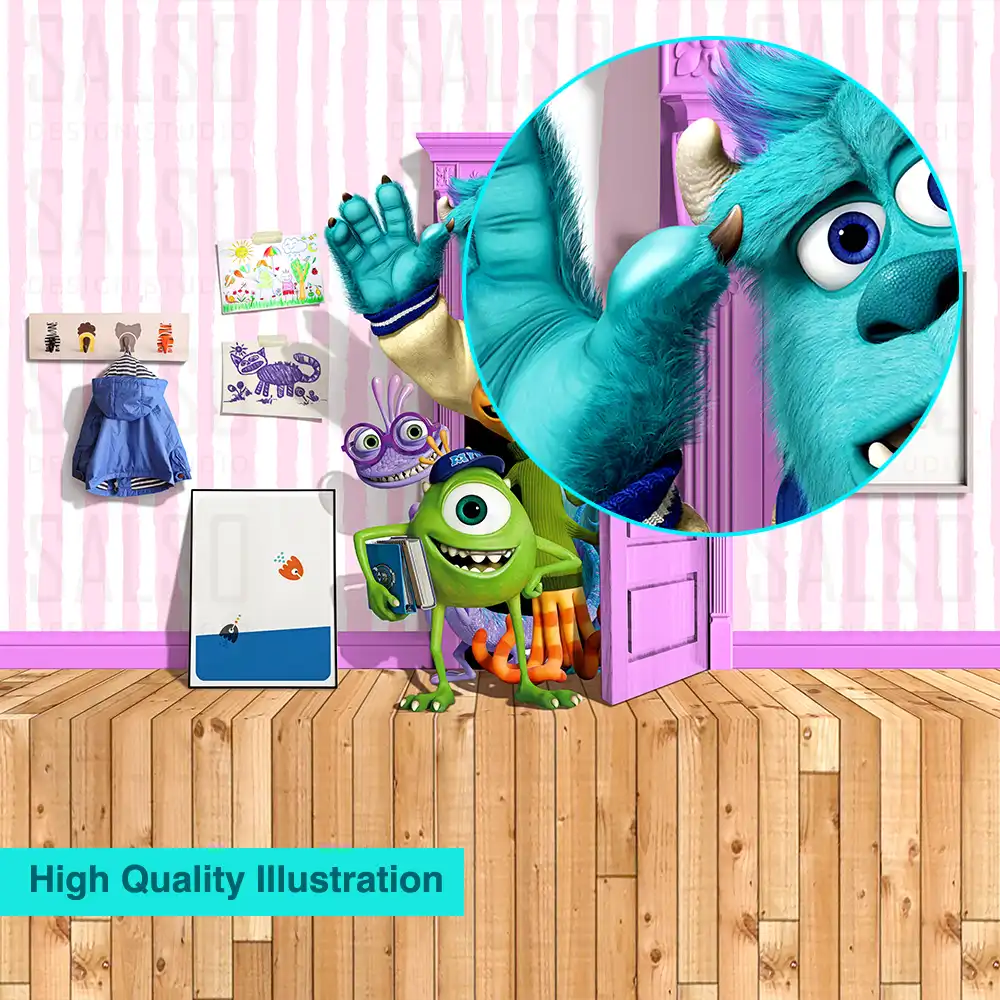 Monster university characters comes out of the kids room door – 3D wall poster